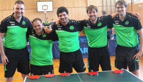 Die Herren des TuS Bad Aibling II wurden in der Bezirksoberliga mit 40:0 Punkten Meister und schafften den Wiederaufstieg in die Landesliga. Auf dem Bild von links: Alexander Zilken, Thomas Maucher, Paul Morgenstern, Sebastian Graf, Jonas Kramer.