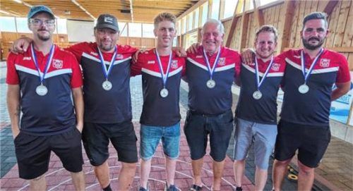 Die dritte Mannschaft der Eisstockabteilung des FC Halfing um Florian Deisenrieder, Martin Estermann, Korbinian Zunhammer, Hans Braun senior, Sepp König und Georg Galavics (von links) hat sich bei den Kreisliga-Meisterschaften den zweiten Platz gesichert und den Aufstieg geschafft.Foto re