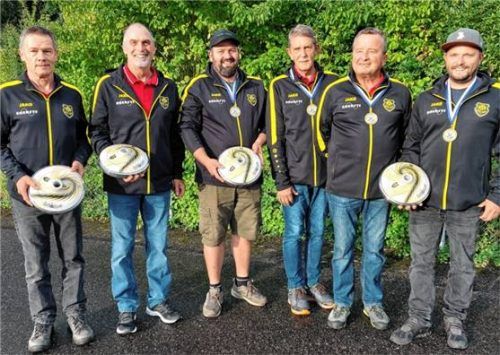 Die Edlinger Stockschützen – von links Alfons Wallner, Werner Eß, Martin Schmid, Harry Heinze, Franz Feicht und Andreas Heinze – haben in der Kreisoberliga mit einer tadellosen Rückrunde die Meisterschaft und den damit verbundenen Aufstieg in die Bezirksliga geschafft.Foto re