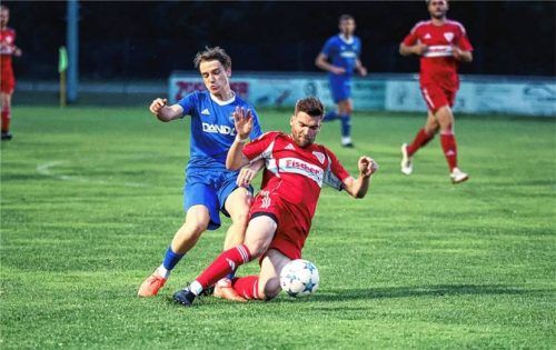 Der SV Seeon-Seebruck hat in der Fußball-Kreisliga 2 den zweiten Saisonsieg gefeiert. Gegen den TSV Fridolfing setzte sich die Mannschaft von Trainer Patrick Kopecky mit 2:1 durch. Raphael Stettmeier (links), hier gegen Simon Heitauer, hatte die Gäste aus Fridolfing bereits früh in Führung gebracht,