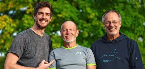 Stefan Ungemach (Bad Endorf, Mitte) hat den Priental-Cup der Gleitschirmflieger mit 266,86 Punkten zum dritten Mal in Serie gewonnen. Zweiter wurde Till Gottbrath (Sachrang, rechts) mit 193,41 vor Thomas Fey (Bernau, links) mit 184,4 Punkten. Der Priental-Cup ist ein Streckenflugbewerb der Kampenwan