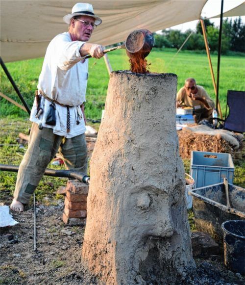 Hochbetrieb herrscht beim Rennfeuer-Festival auf dem Gelände am Rothbachl in Kolbermoor (hinter Aldi): Über 70 Rennfeuer-Experten aus sieben Nationen zeigen hier, wie über Jahrtausende aus Erz das begehrte Metall Eisen gewonnen wurde. Dazu werden aus Ziegel, Lehm und Stroh die Rennöfen errichtet, in