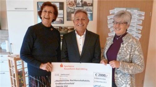 Georg Schmid, Inhaber der GSZ-Dentaltechnik Kolbermoor, unterstützt die Arbeit der Nachbarschaftshilfe Großkarolinenfeld mit einer Spende in Höhe von 2000 Euro. Bei der Übergabe des Schecks betonte Schmid, dass gerade ältere Menschen auf neue Zähne angewiesen seien. Über die Spende freuen sich Vorsi
