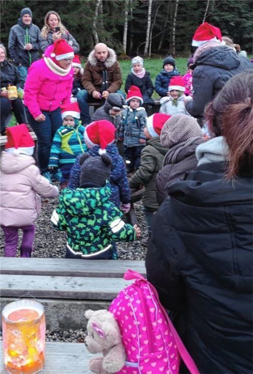 Dort feierten viele kleine Nikoläuse und die Familien eine Waldweihnacht. Die Kinder hatten Vorführungen vorbereitet und für die Vögel Vogelfutter. Dies wurde von den Mädchen