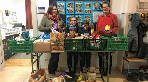 Spendenaktion an der Mangfallschule: Bereits zum zehnten Mal war die Spendenbereitschaft an der Mangfallschule in Kolbermoor groß. An zwei Tagen konnten Lebensmittel eine halbe Stunde vor Unterrichtsbeginn abgegeben werden. Die Schulleiterin Christa Wagner (links) ließ Handzettel in den Klassen vert