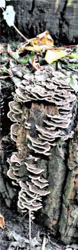 Jede Menge Totholz findet man auch am Tonwerkgelände – und das ist wichtig für Fauna und Flora. Und das lieben auch Pilze, wie die Schmetterlingstramete. Diese Art sorgt beispielsweise für einen schnellen Holzabbau. Woher sie ihren Namen hat? Form und Farbe erinnern an einen Schmetterling. Foto Ried