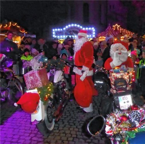 Überraschung und Tradition zugleich: Die Biker-Nikoläuse haben Kolbermoor wieder erobert und wurden von einem großen Publikum erwartet. Am vergangenen Samstag fuhren sie Punkt 18 Uhr auf dem Christkindlmarkt ein. Die sechs Nikoläuse wurden von drei Engeln und einem Krampus begleitet. Kaum waren die
