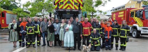 Die Freiwillige Feuerwehr Kolbermoor hatte am Rathaus einen besonderen Großeinsatz. Diesmal musste sie aber nicht zu einem Feuer oder Unfall ausrücken, sondern zur Hochzeit eines Mitgliedes. Und die Kollegen rückten mit einem Großaufgebot an, um dem Brautpaar Katharina und Sebastian Gmeiner zu gratu
