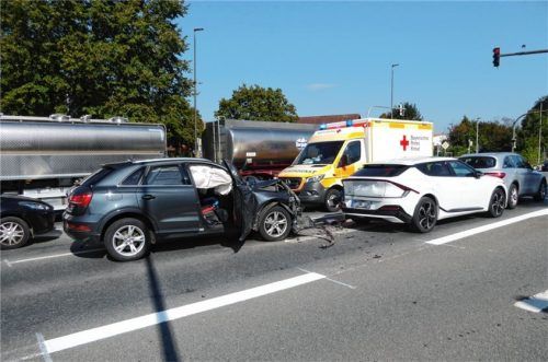 Ein Verkehrsunfall mit vier beteiligten Fahrzeugen ereignete sich gestern gegen 14.25 Uhr vor der Kreuzung Staatsstraße 2078/ Carl-Jordan-Straße. Ein 47-jähriger Rosenheimer touchierte aus bislang unbekannter Ursache einen links neben ihm fahrenden Pkw und fuhr anschließend auf zwei vor ihm fahrende