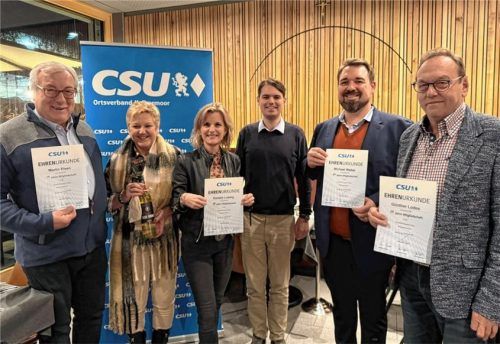 Der CSU-Ortsverband Kolbermoor hat jetzt Mitglieder für ihre langjährige Treue zur Partei ausgezeichnet. Ortsvorsitzender Leonhard Sedlbauer (Mitte) zeichnete zunächst Martin Elsen (links) für 15 Jahre Mitgliedschaft in der CSU aus. Bereits ein Vierteljahrhundert sind Michael Weber und Günther Lodes