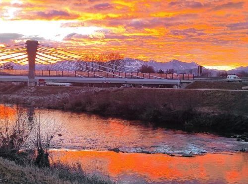 Diesen feuerroten Sonnenaufgang hielt unsere Leser-Reporterin Traudel Vorac gestern morgen mit der Kamera fest. Gelungen ist der Kolbermoorerin das Foto mit Blick auf die „Feuerberge“ bei ihrem Spaziergang an der Brücke beim Aicherpark .Foto vorac