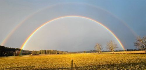 Was für ein Anblick beim morgendlichen Joggen: Als Leserreporterin Tanka Dilpert im Bereich des Leitzachwerkes in Vagen mit ihrem Hund frühmorgens bereits sportlich unterwegs war, musste sie einfach stoppen, um diesen wunderschönen doppelten Regenbogen im Bild festzuhalten. Foto Tanja Dilpert