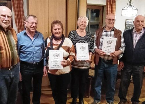 Das mit zwölf Tischen gut besetzte Schafkopfturnier des Rauchclubs Pullach war ein voller Erfolg. Vorsitzender Siegi Zimprich (links) und Spielleiter Alois Weinmann (rechts) freuten sich über ein spannendes Turnier. Den ersten Preis holte Sabine Kratochwil (Mitte rechts), Zweite wurde Inge Schreiner