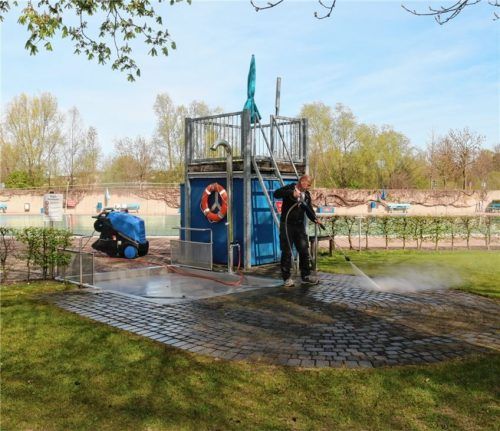 Letzte Arbeiten vor Eröffnungder Freibadsaison