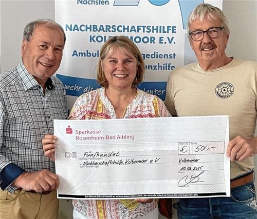 Der Motorradclub Kolbermoor 1975 hat anlässlich seines 50-jährigen Vereinsbestehens eine Spende an die Nachbarschaftshilfe Kolbermoor übergeben. Der Vorsitzende der Nachbarschaftshilfe Peter Weis (links) zeigte sich erfreut über die Spende in Höhe von 500 Euro. Der Kassier des Motorradclubs Peter Li