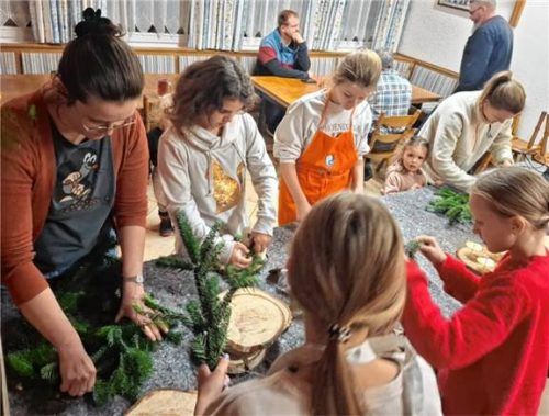 Geschmückte Kränze und Gestecke sowie Engerl und Wichtel bastelten Kinder und Erwachsene im Trachtenheim. Die Ergebnisse können auf dem Kolbermoorer Christkindlmarkt am Stand des Trachtenvereins Mangfalltaler Kolbermoor gegen eine Spende erworben werden. Der Erlös ist für die Vereinsjugend bestimmt.