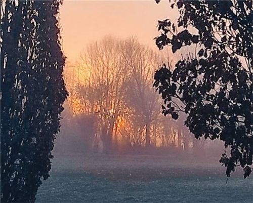 Die Morgensonne kämpft sich durch den Nebel beim Kolbermoorer Friedhof. Etwas später hat sie ihren Kampf gewonnen. OVB-Leserreporterin Traudel Vorac aus Kolbermoor hielt die wunderbare Stimmung während ihrer Walkingrunde fest. Foto vorac