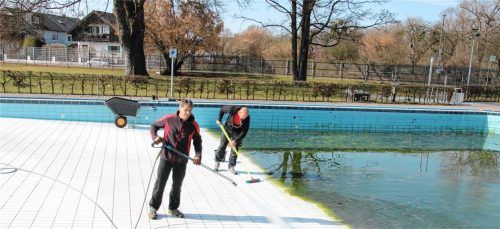 Bis zum derzeit geplanten Eröffnungstermin am Freitag, 1. Mai, sind es zwar noch einige Wochen hin. Dennoch hat die Stadt Kolbermoor bereits damit begonnen, das Freibad an der Oberen Mangfallstraße für den kommenden Badespaß auf Hochglanz zu bringen. So waren jetzt die Stadt-Mitarbeiter Charlie Meie