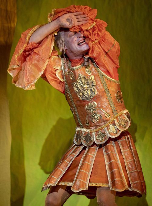 Ein fröhlicher Exerzierplatz – das ist das Theater für Regisseur und Bühnenbildner Herbert Fritsch. Er jagt seine Schauspieler tänzelnd und turnend, Beine schlenkernd und mit den Armen wedelnd, deklamierend, singend und fröhlich lispelnd von Gasse zu Gasse. Als Hampelmänner und -fr
