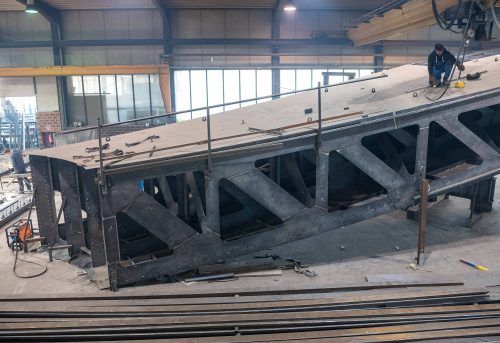 Für das wiedervereinigte Deutschland ist die Halle zu klein. Das Einheitsdenkmal kann Richard Rohlfing selbst in seinen enorm großen Werkstätten nicht zusammenschweißen lassen. Nun wachsen unter den Hallendecken des Stahlbauunternehmers 32 Einzelteile, jedes für sich schon ein Metallk
