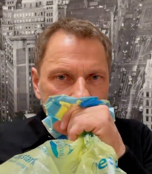 Richy Müller atmet in seinem Clip aus einer Plastiktüte ein- und in eine zweite Tüte aus – „weil er sich große Sorgen um das Coronavirus“ mache. Durch das Atmen in Tüten käme „er nicht mit der Raumluft in Kontakt und atme auch nicht in die Raumluft aus“. Müller fordert die Zuschauer auf, es ihm glei