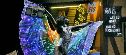 Was war das für ein Happening vor zwei Jahren. Als halb Bayreuth zum Park unterhalb des Festspielhauses strömte. Als dort Manni Laudenbach als kleinwüchsiger trommelnder Oskar im Schlauchboot über den Teich paddelte. Und als Elisabeths Hallen-Arie von Le Gateau Chocolat im Dragquee