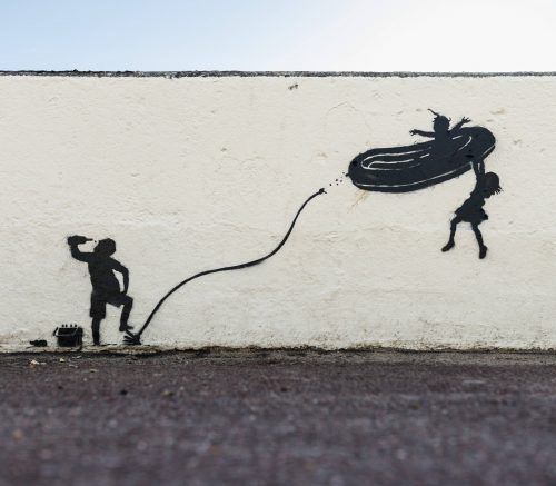 An einem Strand nahe der ostenglischen Stadt Great Yarmouth ist ein Werk von Banksy wegen eines Todesfalls in der Nähe überstrichen worden. Angesichts eines tragischen Unfalls, bei dem 2018 ein Mädchen auf einem geplatzten aufblasbaren Trampolin ums Leben kam, sei das Werk am Strand entfernt worden,