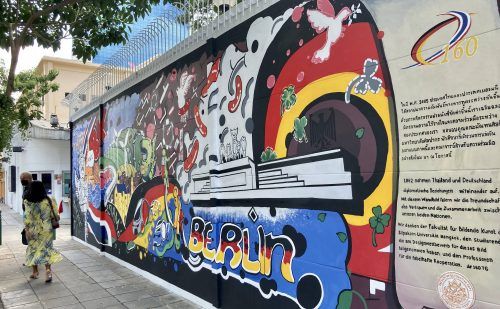 Ein Graffito feiert 160 Jahre diplomatische Beziehungen zwischen Thailand und Deutschland