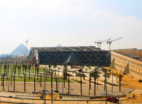 Ein kolossaler Fächer aus Beton, Stahl und Glas liegt am Wüstenhang, auf dem Plateau dahinter die Pyramiden von Gizeh. Das Große Ägyptische Museum nimmt Form an, schon jetzt lässt sich ahnen, wie Schülergruppen und Touristen sich auf dem Vorplatz neben Palmen tummeln werden. Zehn Jahre nach Start de
