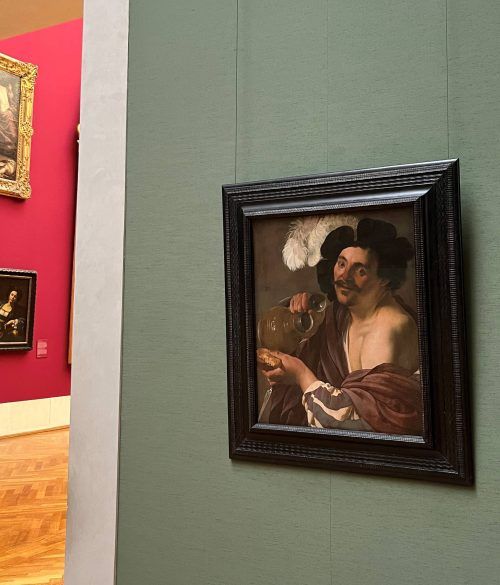 Er hängt in bester Gesellschaft. „Der Zecher“ von Hendrick ter Brugghen (1588-1629). Im Saal IX der Alten Pinakothek, ein paar Meter entfernt von Bartolomé Esteban Murillos „Trauben- und Melonenessern“ (um 1650) und der bäuerlichen Szene von Jacob Jordaens (1593-1678), in der ein üp