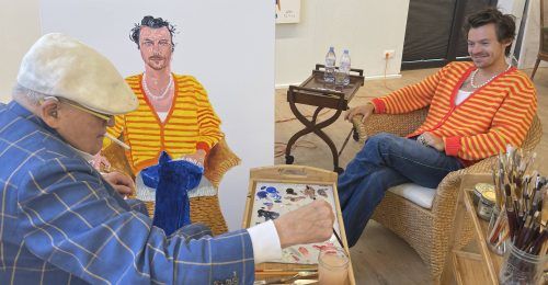 Besucher der National Portrait Gallery in London können bald ein von David Hockney gemaltes Porträt des Popstars Harry Styles bewundern. Der 29-jährige Musiker ist darauf in einem Korbsessel sitzend abgebildet. Er trägt Jeans und eine rot-orange gestreifte Strickjacke sowie eine Perlenkette um den H