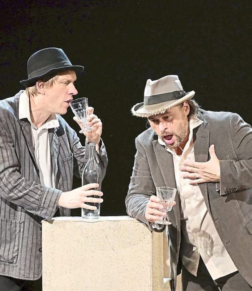 Bechern bis zum Herzinfarkt: Trinker Andreas (Otto Beckmann, re.) und einer seiner Saufkumpanen (Johannes Schön). © Robert Haas