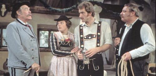 Schlechte Nachrichten: Künftig gibt es vom „Komödienstadel“ nur noch Wiederholungen. Hier eine Szene aus „Das sündige Dorf“ mit (v. li.) Alexander Golling, Christiane Blumhoff, Bernd Helfrich und Gustl Bayrhammer. © Sessner/BR