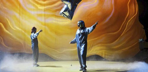 Ein reizvolles Stimmungsgemisch aus Komik und Melancholie bietet der Abend – vor allem dank herausragender Akteure wie hier Jelena Kuljic (li.) und Maren Solty. © Gabriela Neeb