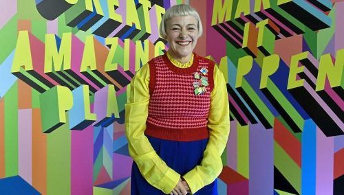 Das verspricht, kreativ und bunt zu werden – und für ordentlich gute Laune zu sorgen. Die britische Künstlerin Morag Myerscough gestaltet Flux als „begehbare Skulptur“. © Marc