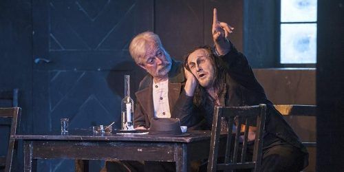 Traumpaar am Münchner Volkstheater: Alexander Duda als Brandner (li.) und Maximilian Brückner, der den Boandlkramer spielt. Auf die Frage, ob er Karten und Kerschgeist griffbereit hätte, wenn der Tod bei ihm in der Tür stünde, sagt Brückner: „Nein. Dann geh ich mit, dann ist es eben so. Obwohl – als