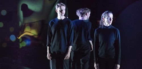 Bewusst nüchtern und gerade deshalb verstörend intensiv agiert das Ensemble von „Offene Wunde“. Hier eine Szene mit Ruth Bohsung und Max Poerting. © Gabriela Neeb