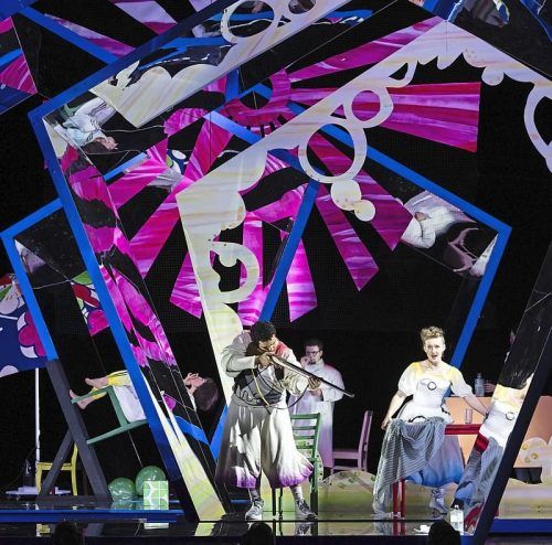 Das Bühnenbild läuft der Regie den Rang ab: Szene aus „Das Jagdgewehr“ in der Inszenierung von Ulrike Schwab und der Ausstattung von Jule Saworski. © Geoffroy Schied
