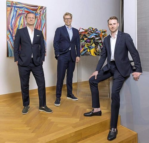 Drei Freunde, drei Kunstenthusiasten: (v. li.) Constantin Hemmerle, Tim Aumüller und Björn Gerstner in ihrer gemeinsamen Auss