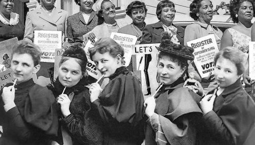 Für das Wahlrecht demonstrieren diese Frauen. © Passow