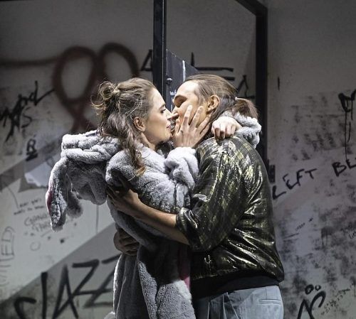 Körperliche Nähe lässt die seelisch verwundete Violetta (Andromahi Raptis) erst in der Begegnung mit Alfredo (Sergei Nikolaev) zu. © Pedro Malinowski