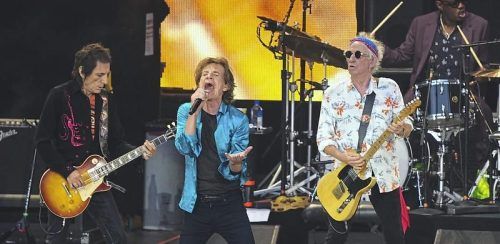 Rüstig auf der Bühne: (v. li.) Ronnie Wood, Mick Jagger und Keith Richards. © Soeren Stache / dpa
