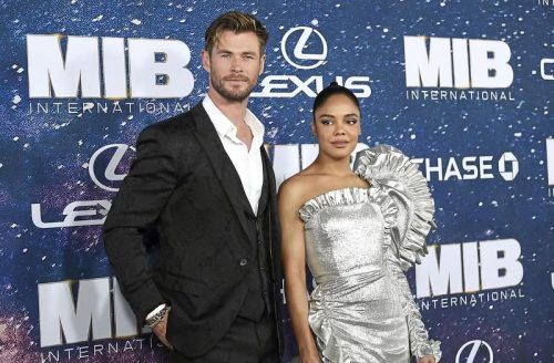 Sie waren im Jahr 2019 in „Men in Black: International“ auf der Jagd nach Aliens: Chris Hemsworth und seine Schauspielkollegin Tessa Thompson. © Evan Agostini/dpa