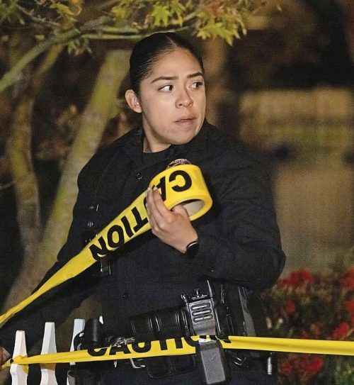 Eine Polizeibeamtin mit Absperrband am Tatort. © dpa