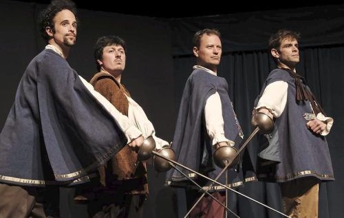 En garde in der Seifenoper: Die drei Musketiere und D‘Artagnan spulen ein rasantes Degen-wechsle-dich-Spiel ab. © Alexander Bornschlegl