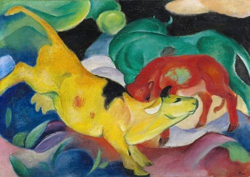 Bekannt: Franz Marcs „Kühe, rot, grün, gelb“ von 1911. © Städtische Galerie im Lenbachhaus