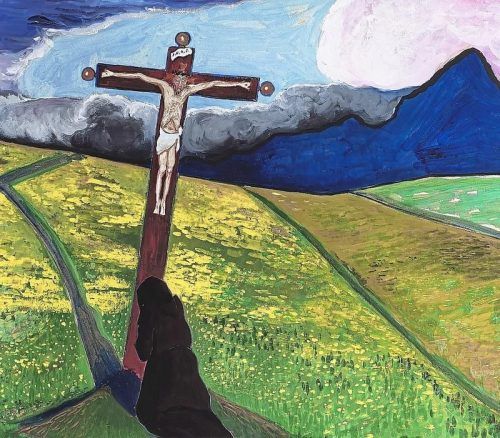 Ehrlich religiös: „Kruzifix in der Berglandschaft“, gemalt von der Blauen Reiterin Marianne von Werefkin. © privat