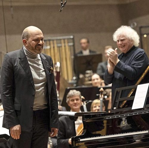 Pianist Kirill Gerstein mit Sir Simon Rattle. © A. Ackermann