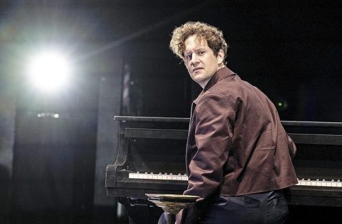 Allein, allein: Moritz Treuenfels im schwarzen Raum, vor sich einen glanzlosen Flügel. © SANDRA THEN