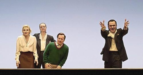 An diesem Schauspielertheater darf man sich ergötzen: Szene mit (v.li.) Eva Bay, Maren Solty, Stefan Merki und Vincent Redetzki. © Judith Buss